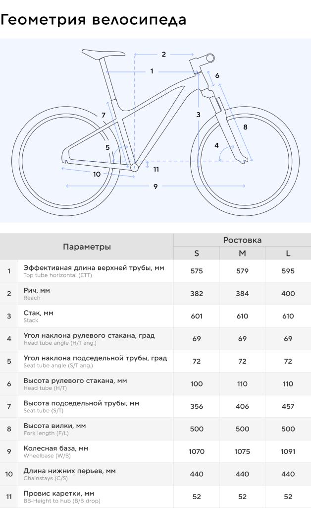Основные параметры для выбора размера рамы